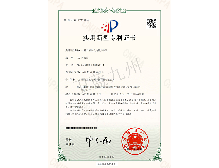 你現(xiàn)在的位置 主頁公司資質(zhì)一種自清潔式電捕焦油器實用新型專利證書